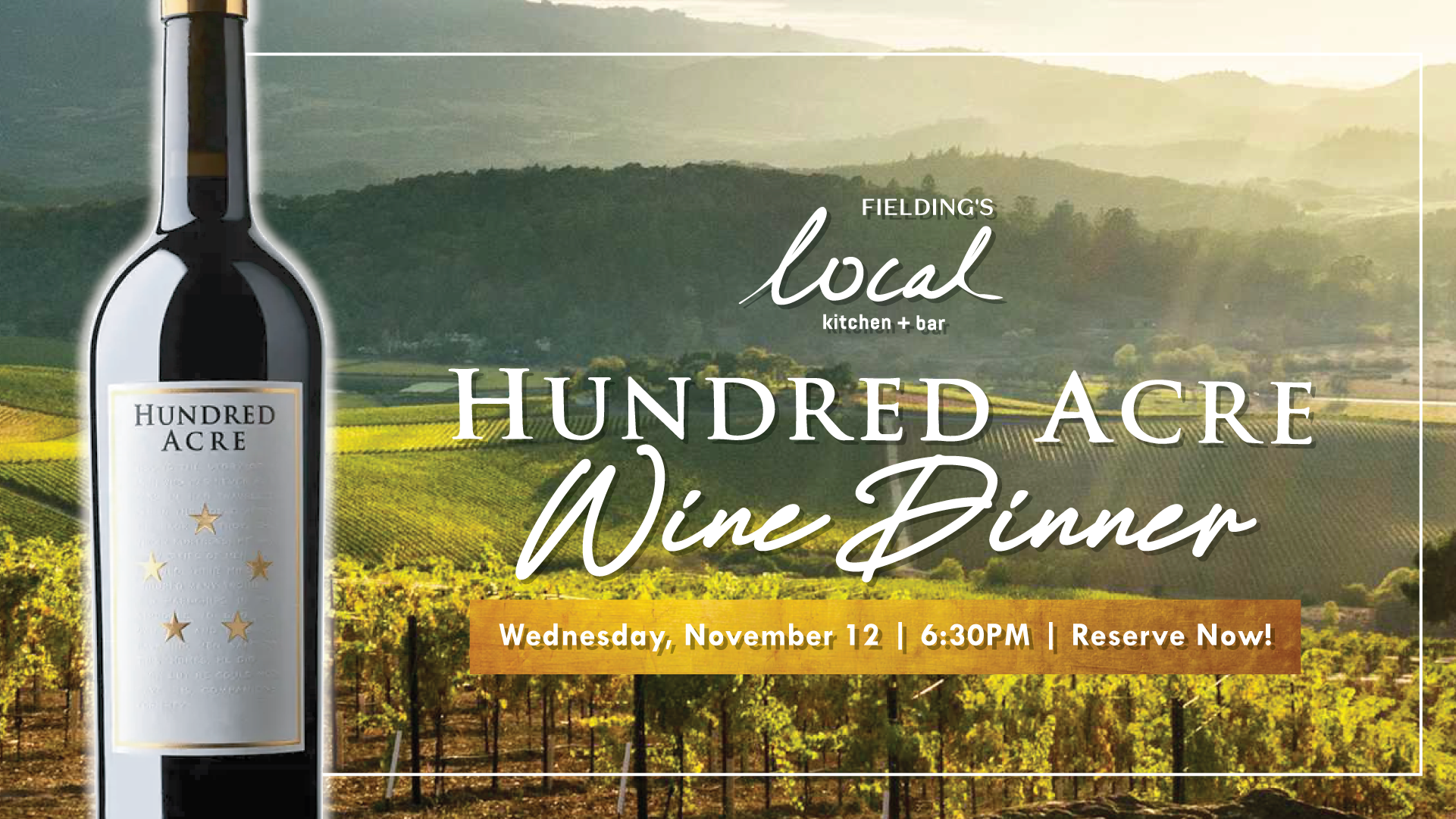 Join us on Wednesday, November 12th for an extraordinary Hundred Acre Wine Dinner. The evening begins with a welcome cocktail at our reception, followed by a five-course menu expertly paired with five world-class wines from the acclaimed Hundred Acre portfolio.